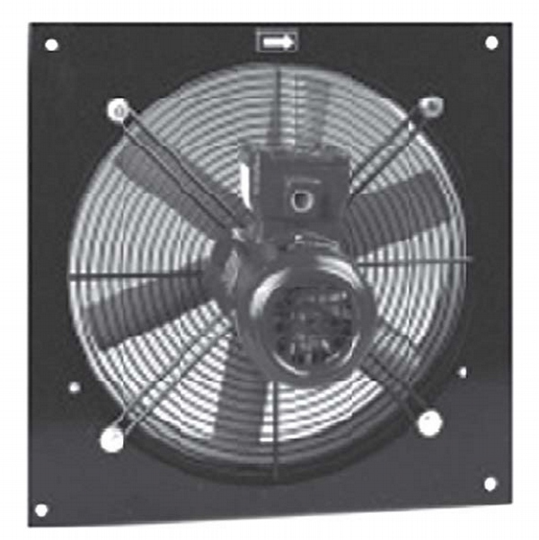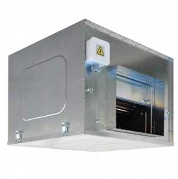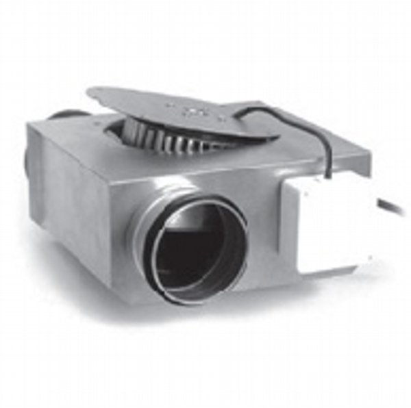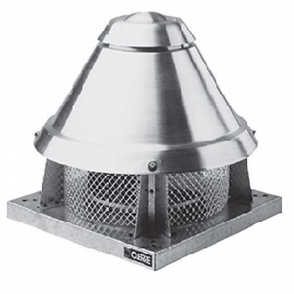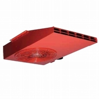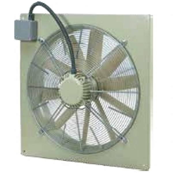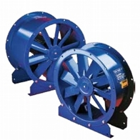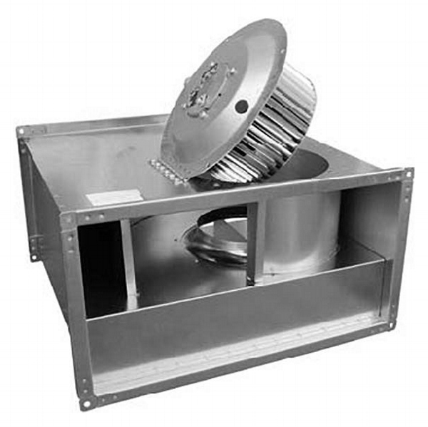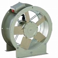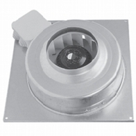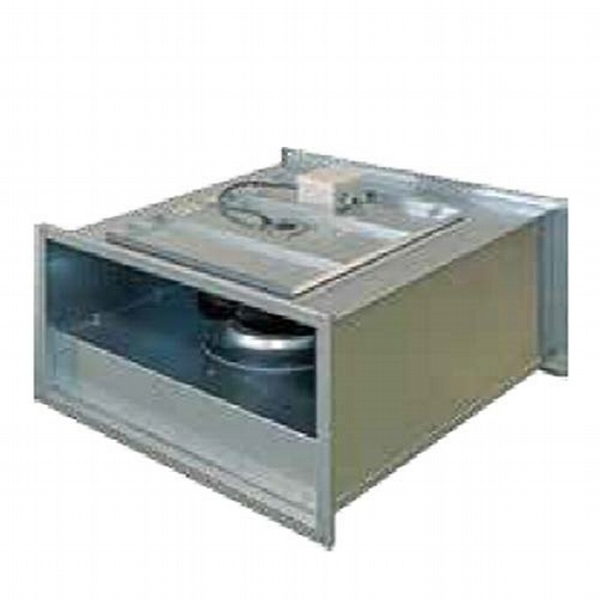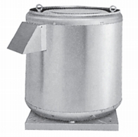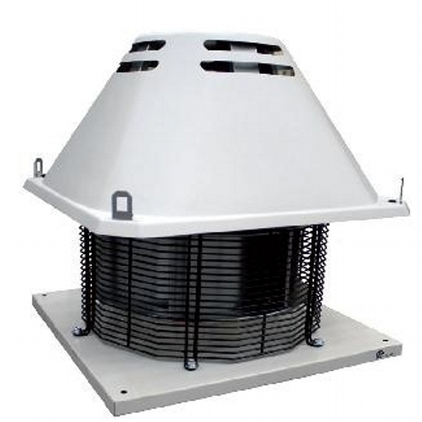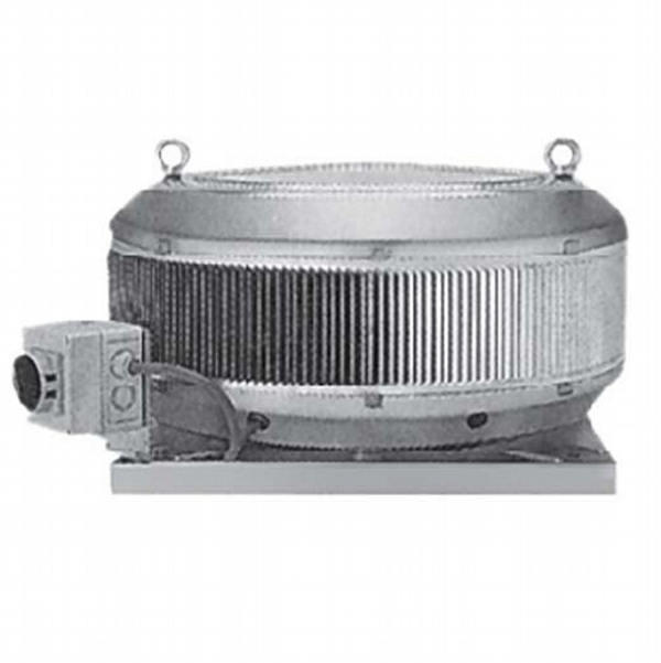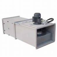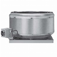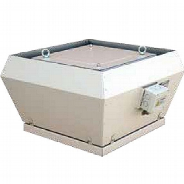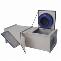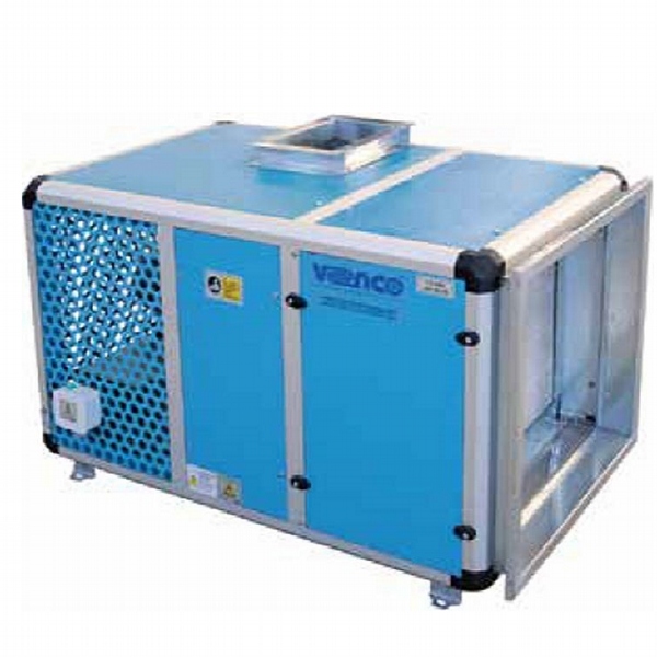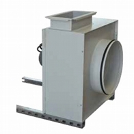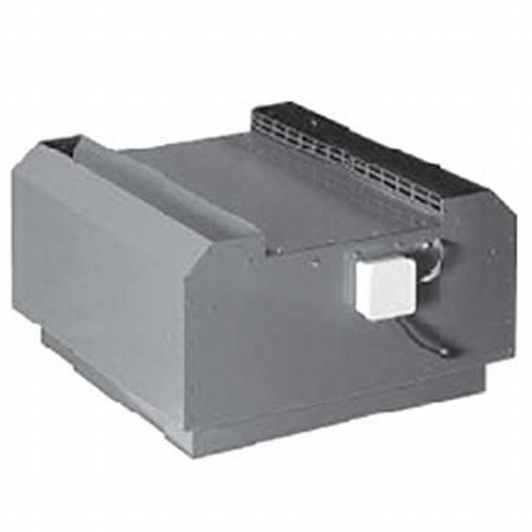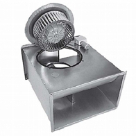 Vertical outlet, deep inlet aluminum frame, epoxy coated reverse inclined rare blade radial fan, IP54 protected motor placed in separate chamber out of air flow