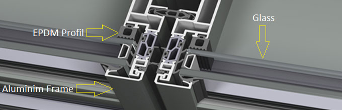 EPDM profiles are produces in various shapes designs depending upon the aluminium frame designs and sealing condition requirement. These are mainly in black colours and rarely used in natural colours as per specific requirement. Since it is excellent in weather resistance, it makes it most suitable to be used for aesthetically good appearance. It provides excellence sealing against wind, dust, water and from fire. This creates a thermal bridge between glass and aluminium frame.